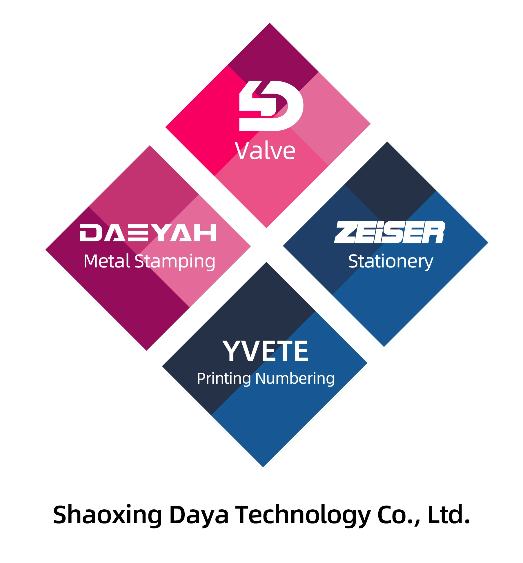 Shaoxing Daya Technology Co., Ltd. is a large manufacturing enterprise based in China. It operates under several renowned brands: DAEYAH for metal stamping numbering machines, YVETE for rotary printing numbering machines, ZEISER for automatic numbering mac